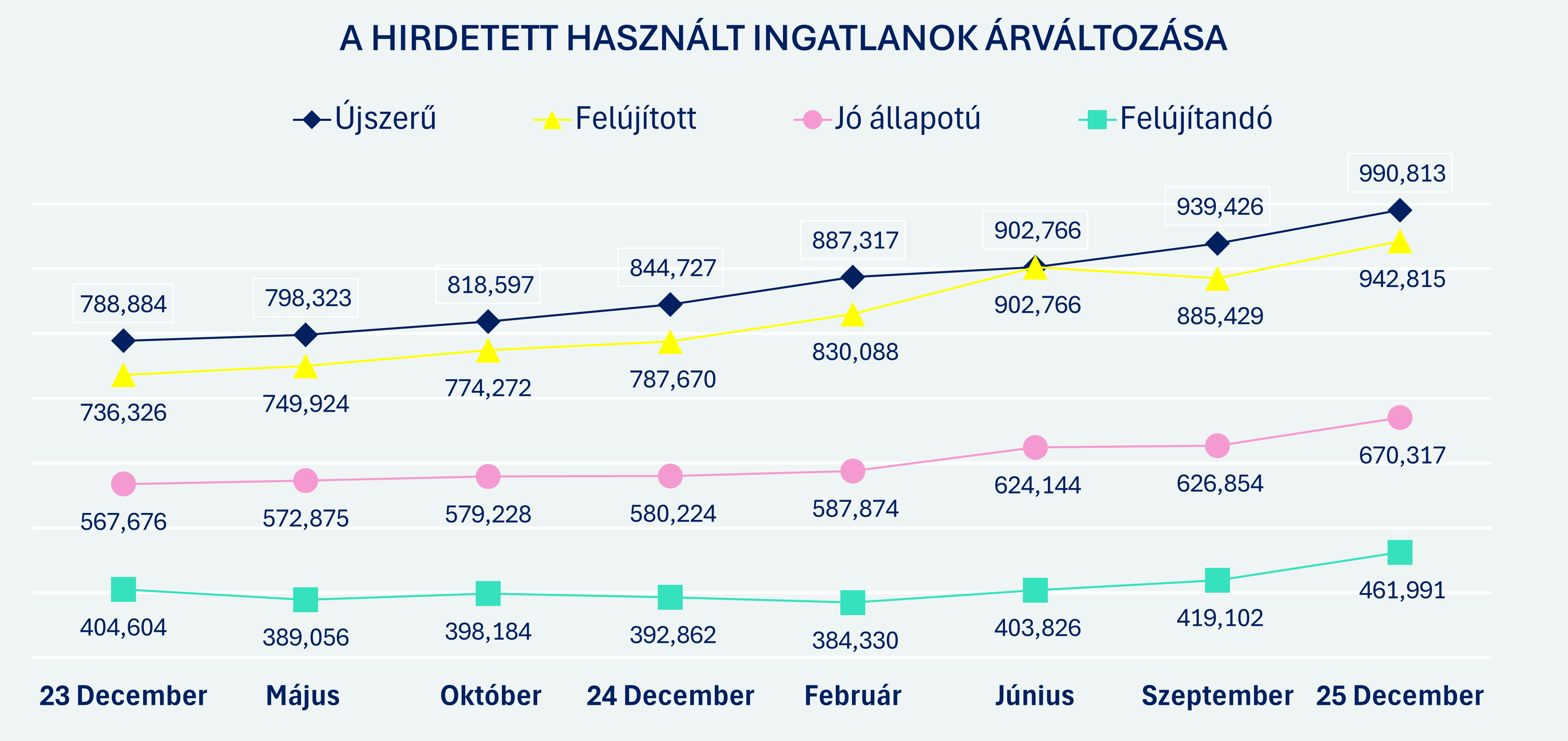 Ez illeszkedik ahhoz a tágabb európai képhez is, amely szerint Magyarországon az elmúlt évtizedben – és különösen az utóbbi időszakban – az uniós átlagnál jóval erősebb volt az ingatlanárak növekedése - az Eurostat szerint a hazai ingatlanok árai 2010 óta két és fél-háromszorosukra emelkedtek. A hazai adatok alapján ez a dinamika most már a korábban leginkább árérzékeny, felújítandó szegmensben is megjelent.
